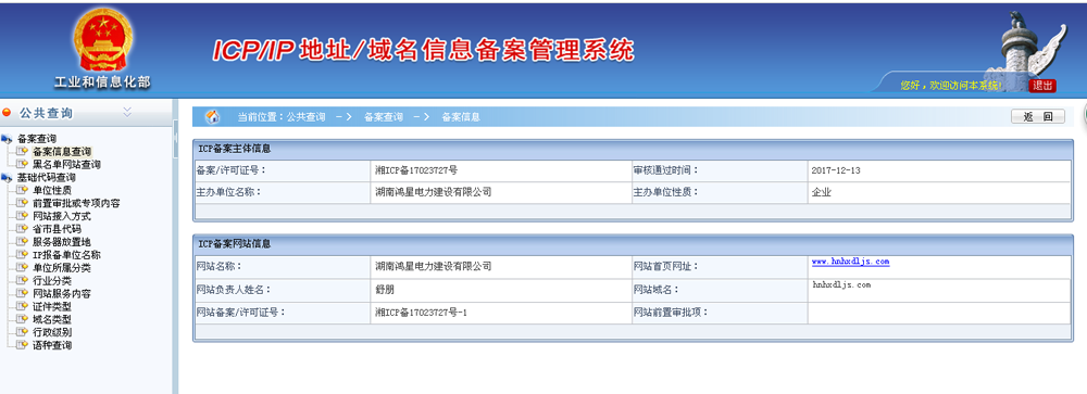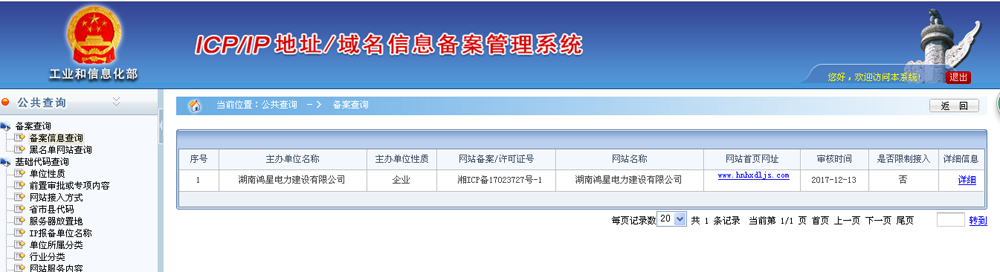 恭喜鴻星電力公司網站域名備案成功~~