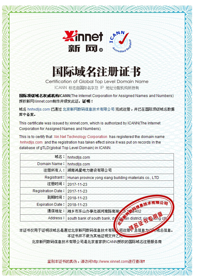 鴻星電力公司成功申請域名-hnhxdljs.com